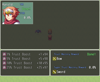 This extension also introduces functionality for Super Trust Mastery Rewards, which can only be obtained via items that can raise an Actor's Super Trust Mastery.